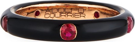 Adolfo Courrier Black Enamel & Ruby Ring, Size 9.25