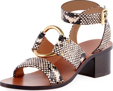 Chloe Snake-Embossed Leather Circle Sandals