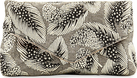 Dries Van Noten Feather-Print Canvas Envelope Clutch Bag