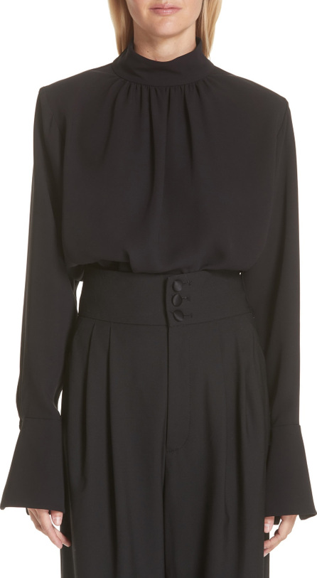 MARC JACOBS Rosette-Collar Velvet-Bow Carnation-Print Silk Blouse