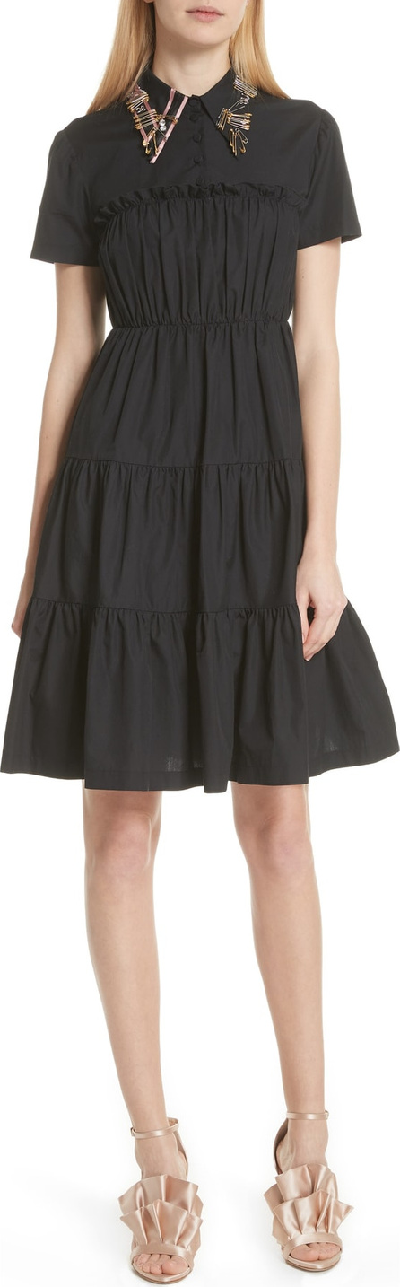 N°21 Nº21 Pin Collar Tiered Poplin Dress