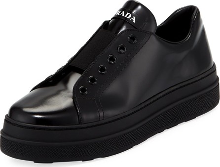 Prada Leather Low-Top Sneakers with Two-Tone Heel