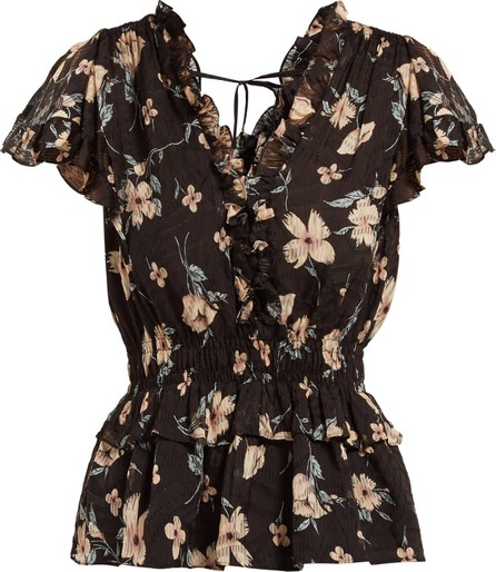 Rebecca Taylor Floral-print ruffled silk-blend blouse