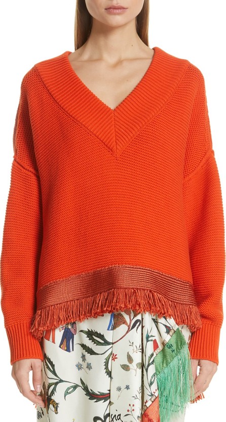 Oscar De La Renta Fringe Hem Cotton & Silk Sweater