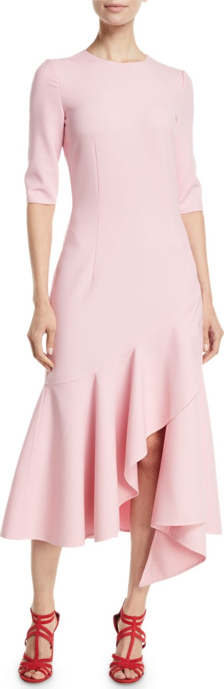 Oscar De La Renta 3/4-Sleeve Drop-Waist Fitted Asymmetric-Hem Midi Dress
