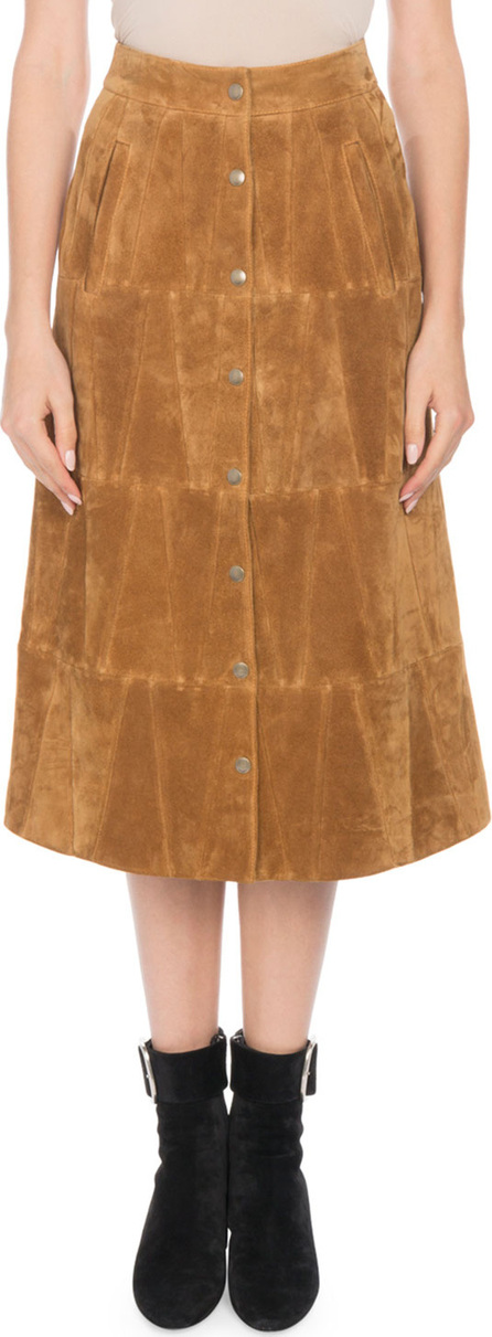 Saint Laurent Snap-Front Calfskin Suede Midi Skirt