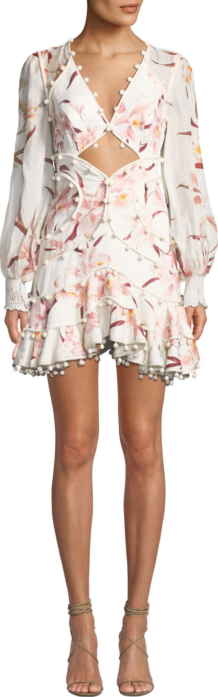 Zimmermann Corsage Floral-Print Cutout-Front Corsage Bauble Mini Dress